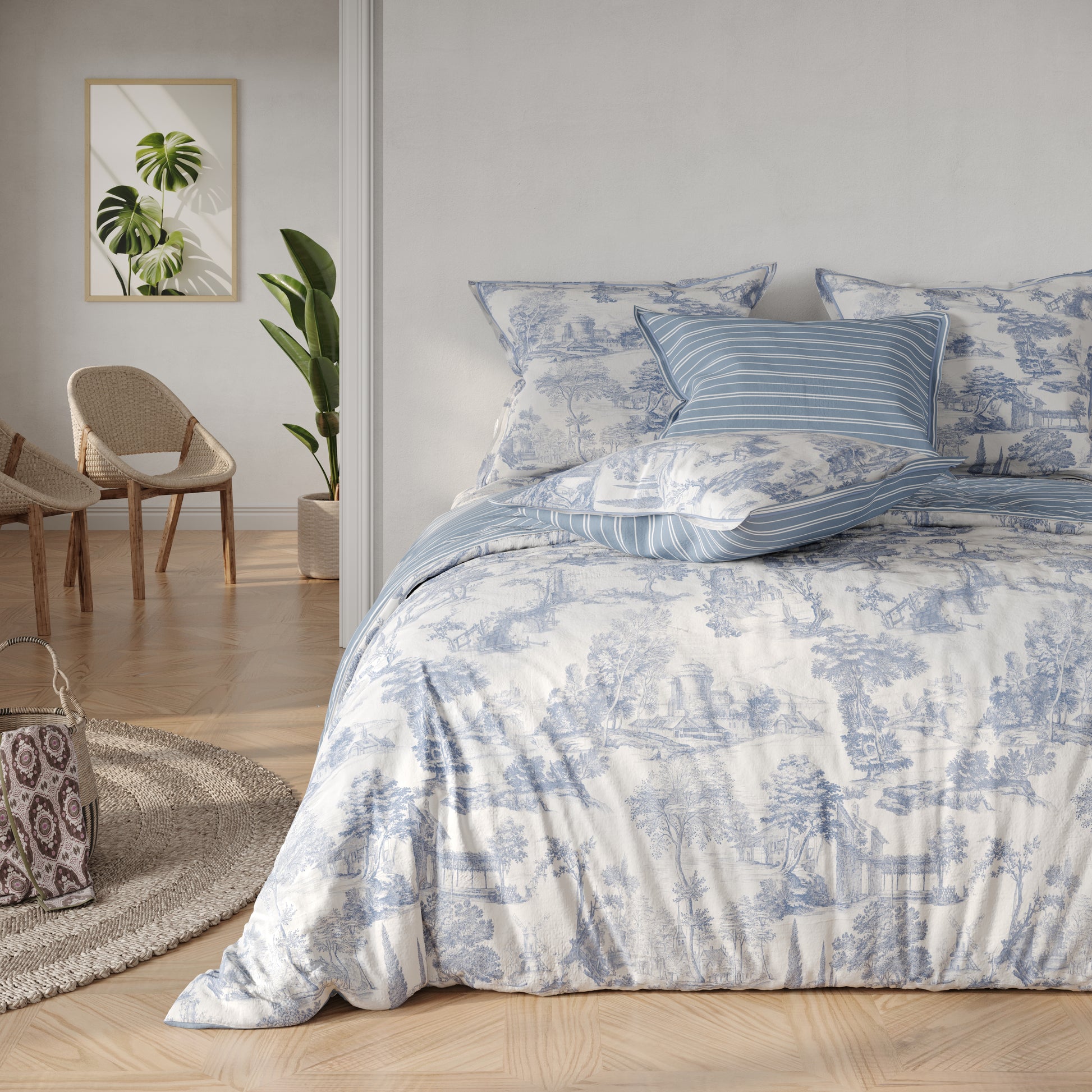 Parure de draps Père Blanc en percale 100 % coton, 80 fils, offrant douceur, fraîcheur et confort durable. Elle comprend 1 drap plat 240 × 300 cm, 1 drap-housse 140 × 190 cm et 2 taies d’oreiller 65 × 65 cm, pour une literie élégante et de qualité au quotidien. Parure de lit Père Blanc en percale 100 % coton, 80 fils, alliant douceur, respirabilité et confort durable. Elle comprend 1 housse de couette 220 × 240 cm et 2 taies d’oreiller 65 × 65 cm, pour un linge de lit élégant et de qualité au quotidien.